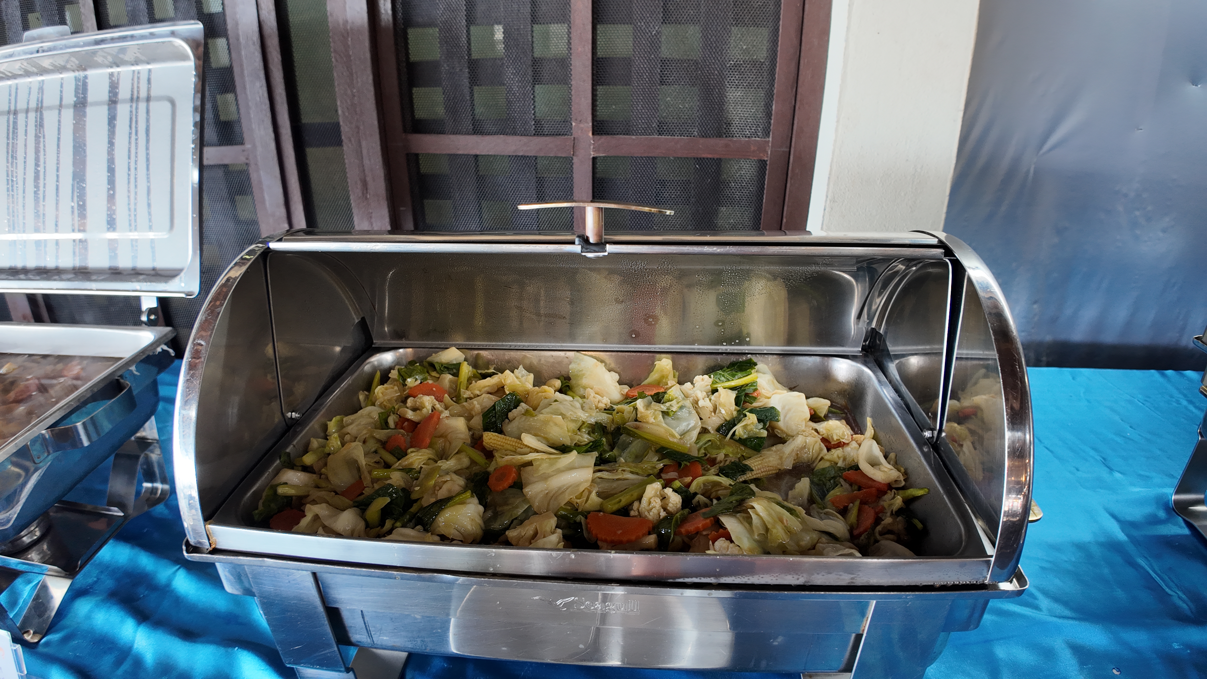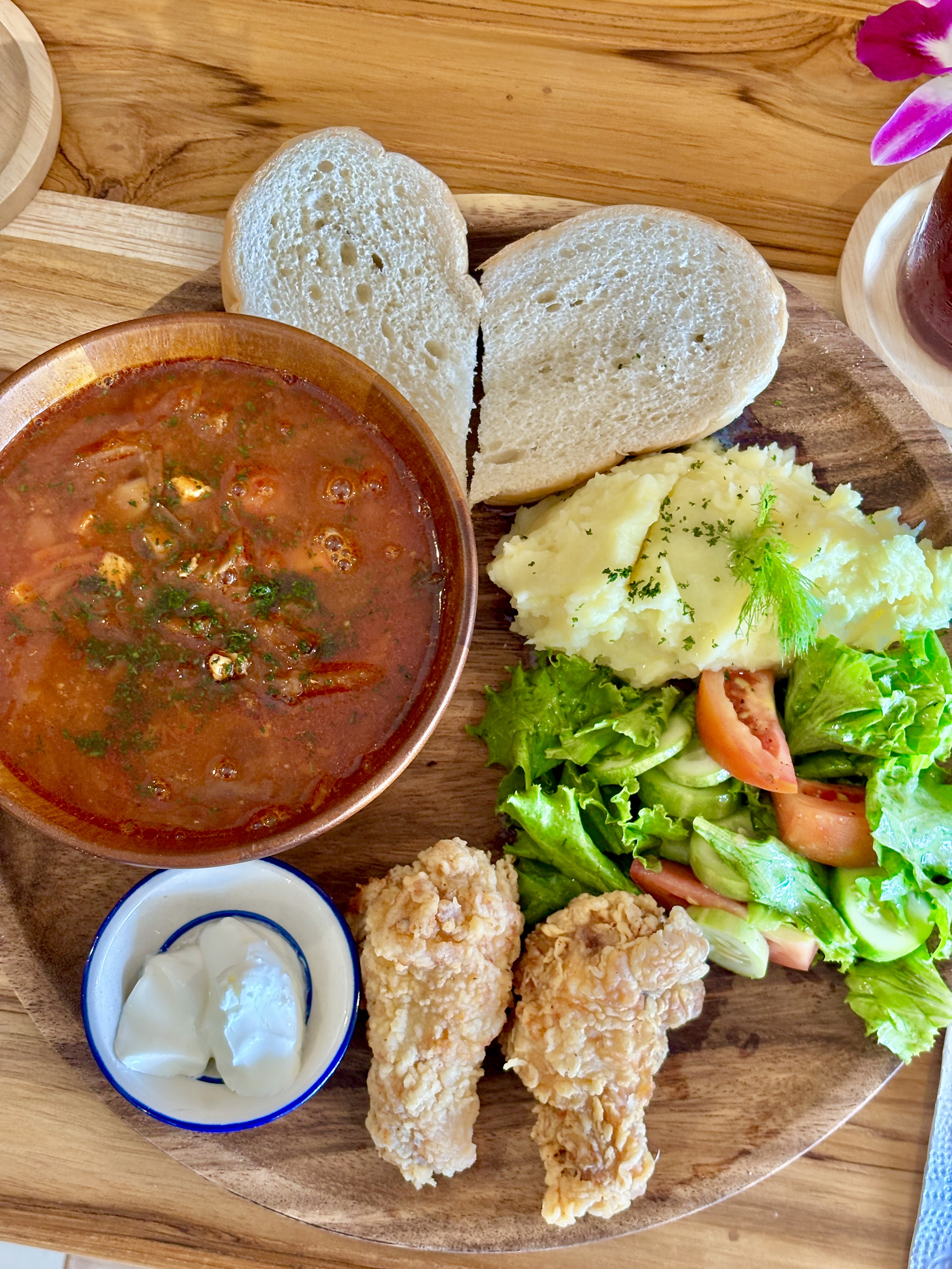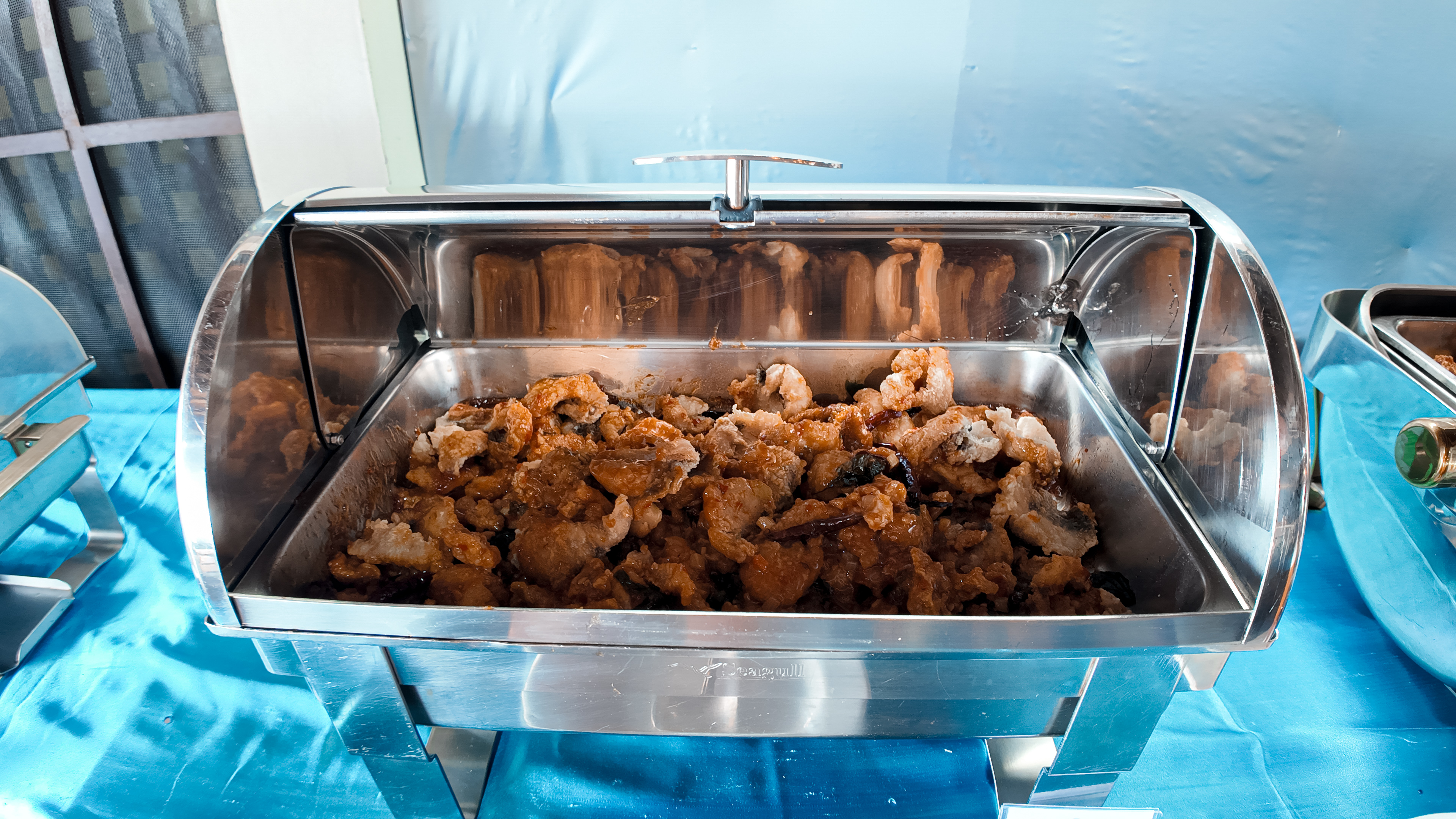 Единственный остров в цивилизацией - Пхи Пхи Дон. Жизнь здесь просто бурлит и днем и ночью: большое количество ресторанов, кафе, ночных баров; отелей; хостелов и всевозможных мест с развлечениями. В одном из ресторанов с тайской кухней нас ждет сытный обед из риса, курицы и овощей.