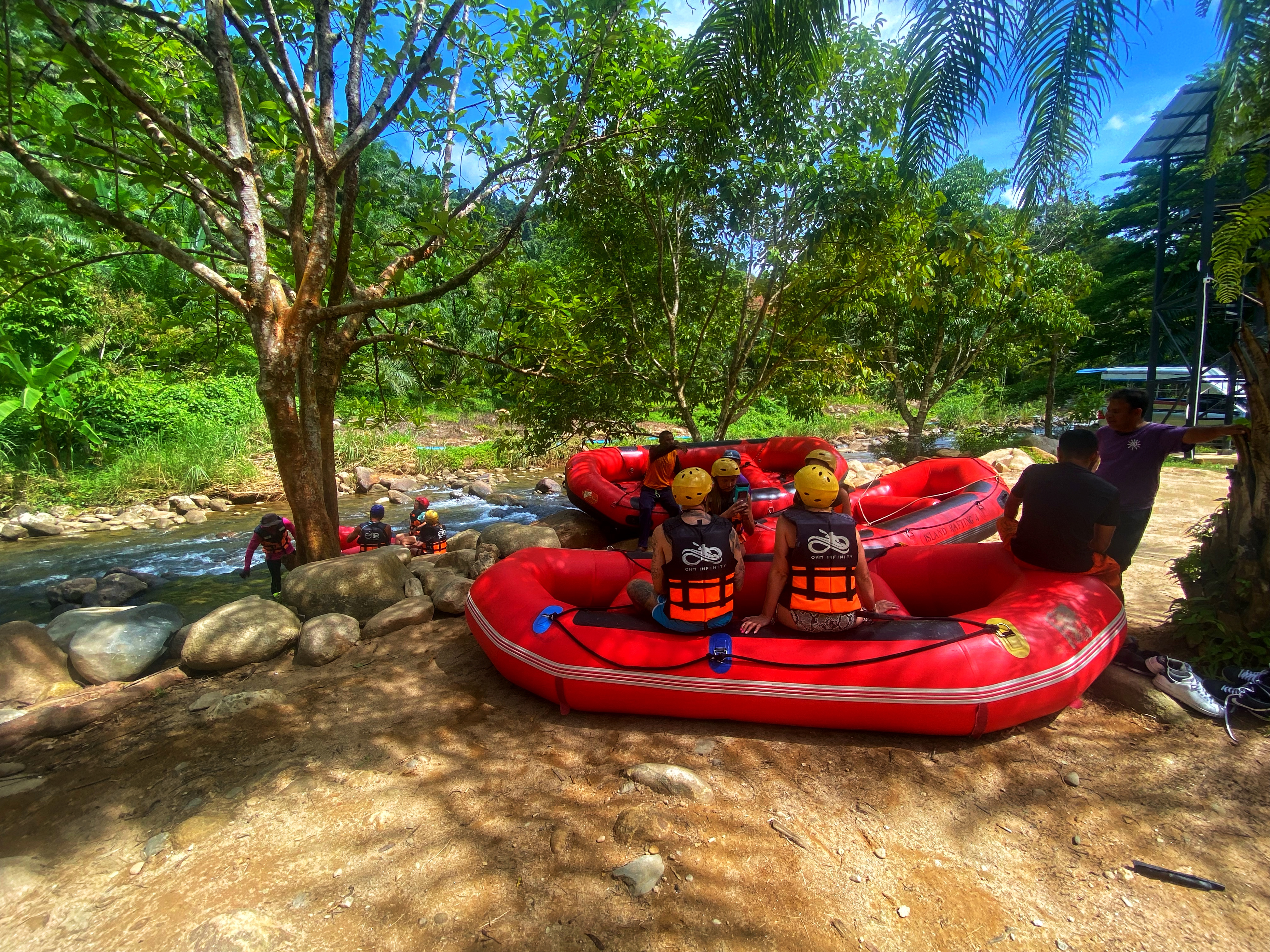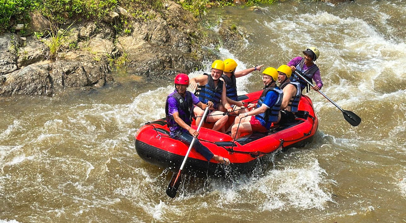 Наше путешествие начинается с рафтинга по бурной горной реке 5 км, где вас ждут острые ощущения и захватывающие спуски на надувных рафтах под руководством опытных гребунов. Ощутите мощь водной стихии и незабываемый адреналин, плывя сквозь живописные джунгли. Поездка возможна с детьми старше 7 лет или ростом от 110 см.